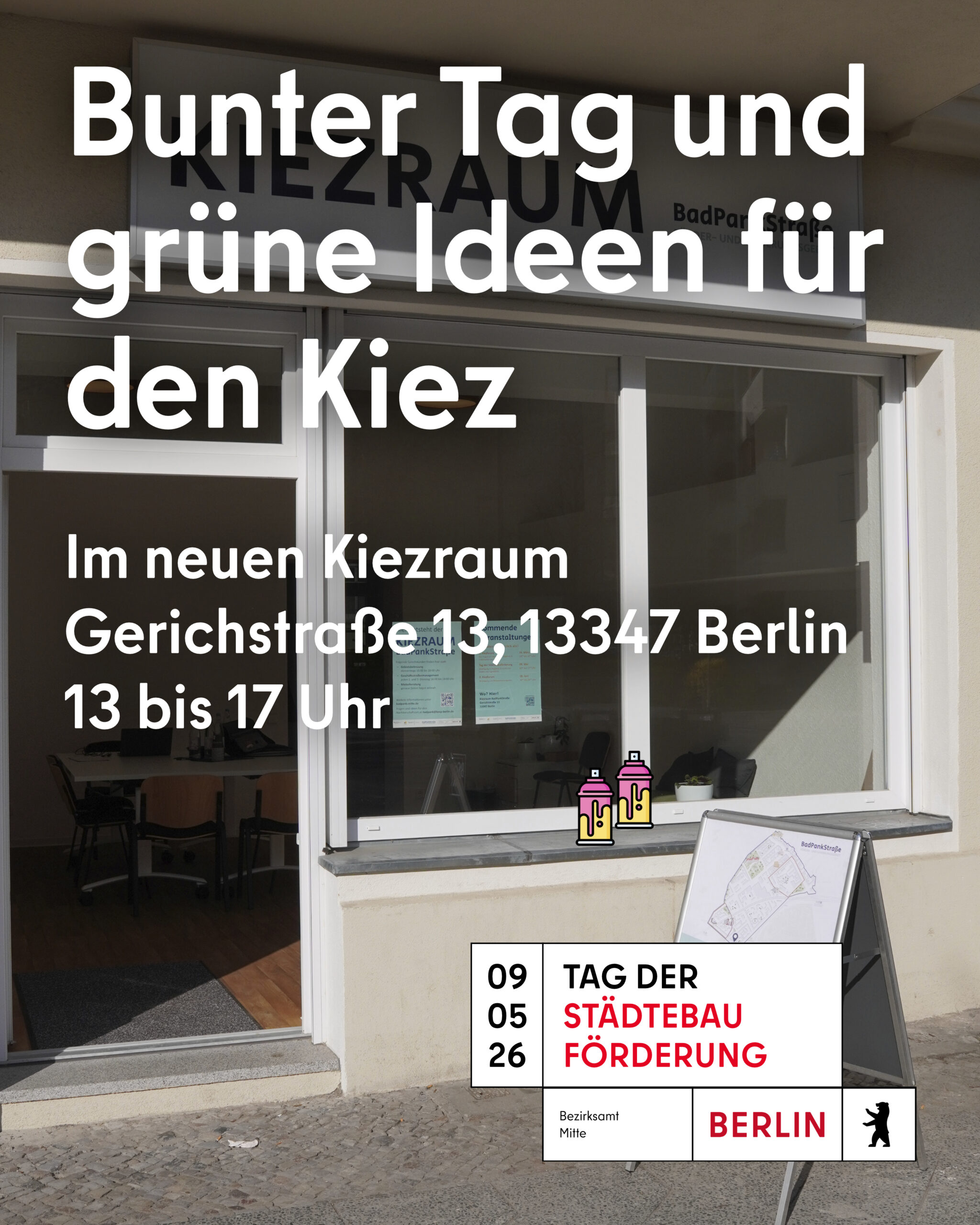 Das Gebiet rund um die Badstraße und die Pankstraße ist seit 2021 Förder- und Sanierungsgebiet. Das Land Berlin und der Bezirk Mitte schaffen mit dem Programm „Lebendige Zentren“ neue Grünflächen, Plätze und Wege. Das Programm unterstützt auch die Geschäftsstraße sowie Projekte in der Nachbarschaft. Und es fördert Maßnahmen, die das Gebiet besser auf Hitze, Starkregen und andere Folgen des Klimawandels vorbereiten.